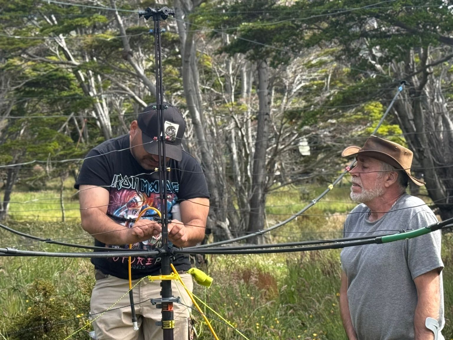 But the biggest story of the day features the humblest antenna of the entire expedition: a 40-meter wire dipole, installed no more than 2 meters high, with its tips practically touching the ground. This simple and rudimentary antenna has become the expedition’s true workhorse, managing to circle the globe and establish contacts with amateur radio operators in numerous regions, all eager to hunt down Navarino Island, one of the southernmost places on the planet.